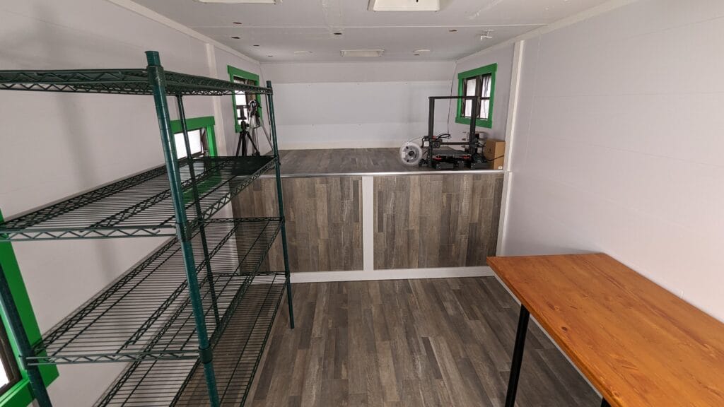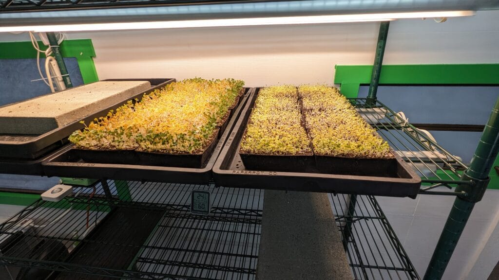 This shelf spacing accommodates both tall and short crops (see image below). If only short crops were being grown, we could move the shelf 2 to 3 inches (5 to 8 cm) closer to increase PPFD to 140 or 150 µmol/m2s.