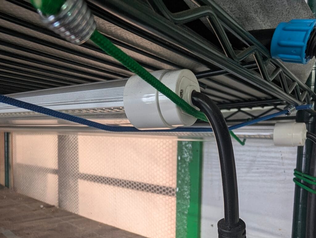 Many consumers LED brands are not sufficiently waterproof for microgreens production – even though they are popular choices. Look for brands that offer an IP (Ingress Protection) rating of 65 or more.