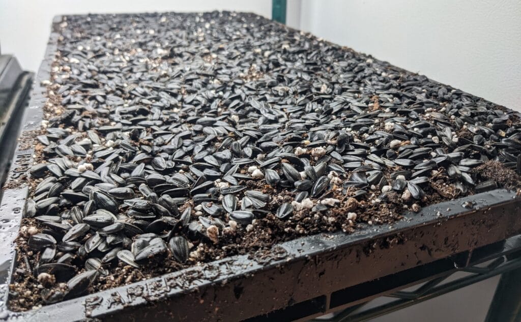While there are many different ways to grow microgreens, a common method is growing them in a one-inch deep 10” x 20” plastic tray (known as a “ten-twenty” tray) filled with a peat or coir-based soil mix.